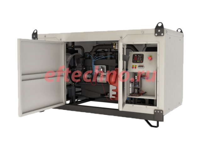 Монтируется в закрытом шумопоглощающем корпусе, с возможностью автоматического запуска в случае отключения основной электросети. Двухтопливная система позволяет использовать в качестве топлива сжиженный газ (пропан-бутан) или природный (метан).